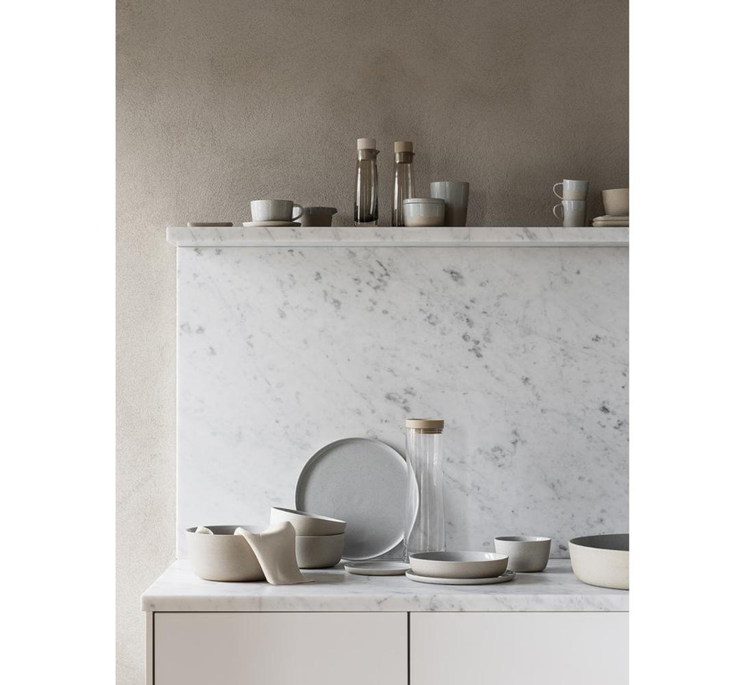 Sanft und rau – als ob Wasser über Sand fließt, die Keramik- Serie Sablo: Sie besteht aus einer einzigartigen Mischung aus farbigem Ton, Quarz, Mineralien und Oxiden. Die leicht gesprenkelte Optik harmoniert perfekt mit der Farbkombination aus Grau- und Beigetönen und wird haptisch verstärkt durch die teilweise aufgetragene Glasur. Aufgrund der Farbabweichungen ist jedes Teil ein Unikat mit einem ausgeprägten handwerklichen Erscheinungsbild. Wobei hier das Set von zwei Thermobechern aus einem hochwertigen Keramikmaterial handgefertigt wurde und über die Funktion verfügt Ihre Heißgetränke warm zu halten. Verwendung und Pflege: Sablo ist spülmaschinengeeignet und die Kanne kann zusätzlich in der Mikrowelle verwendet werden.